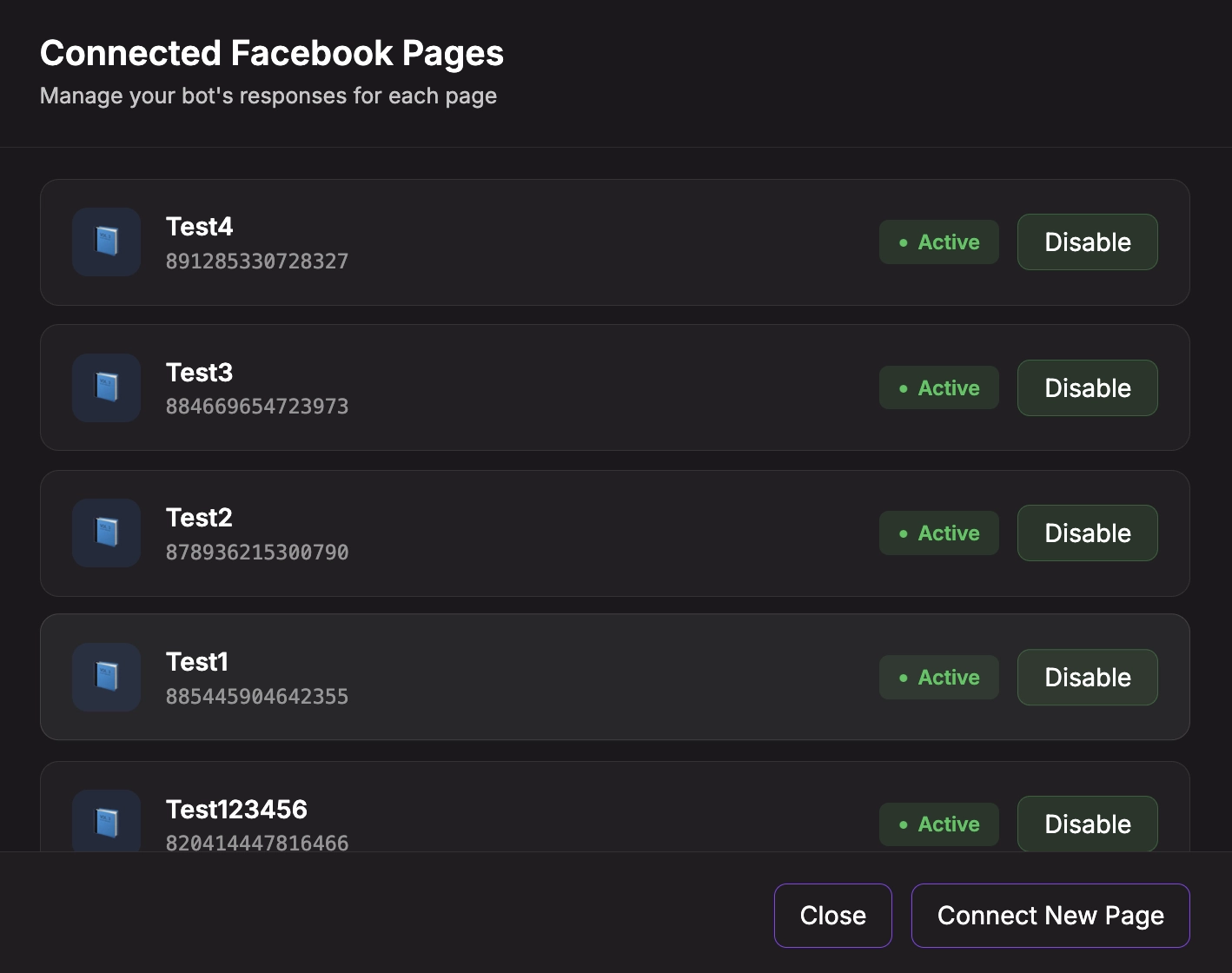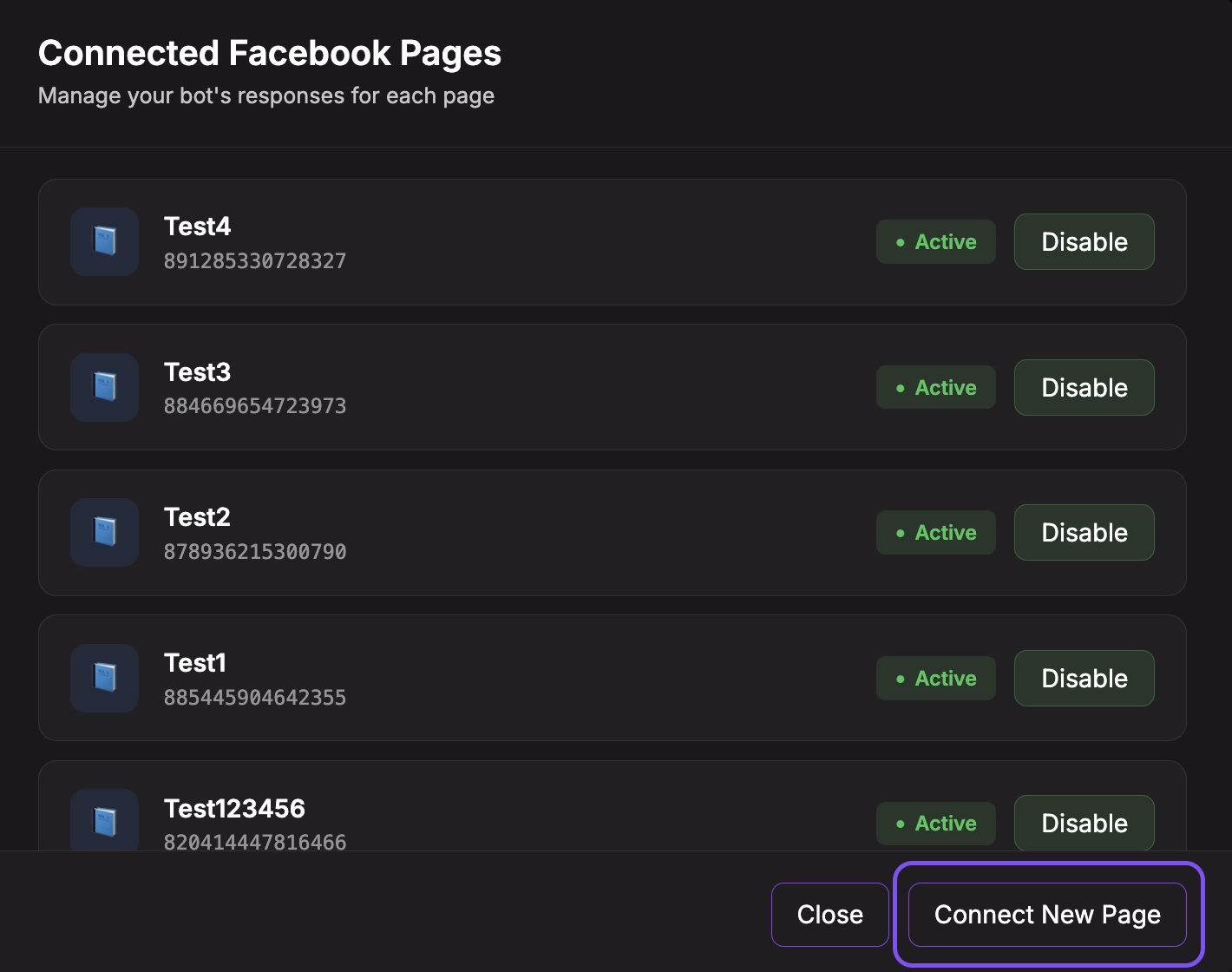 Note: When you open the Manage Pages modal, Chatislav automatically refreshes the list of pages from Facebook in the background to ensure you see the most up-to-date information.