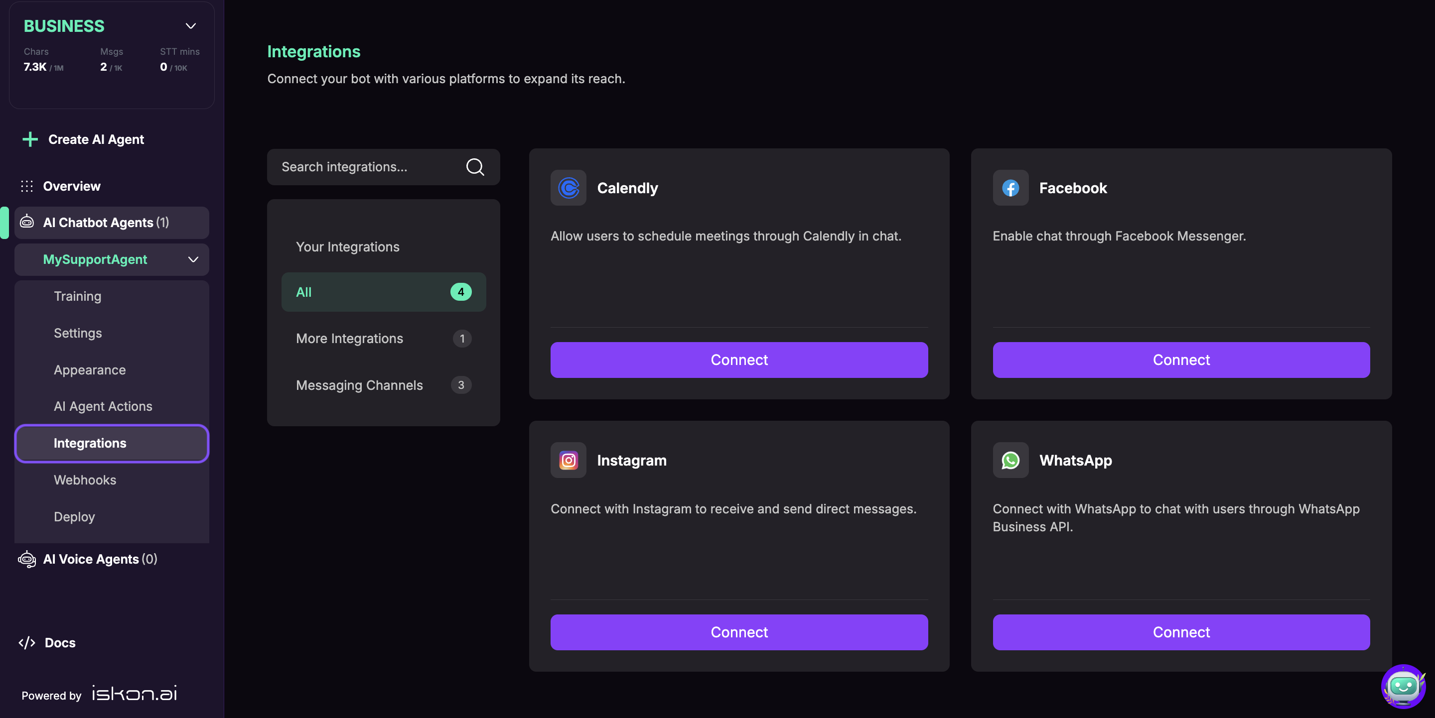 Connect your Chatislav AI agent to Facebook Messenger to provide automated customer support and engagement directly through Facebook. This integration allows your customers to interact with your AI agent without leaving their Facebook experience.